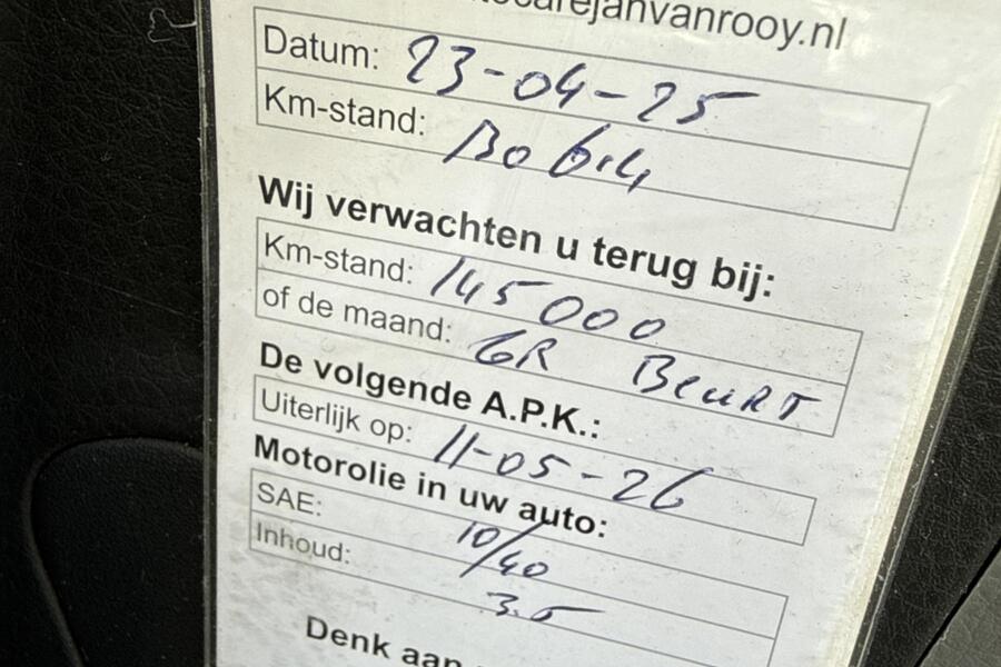 Deze bestaat uit een technische controle, vloeistoffen bijbvullen, minimaal 6 maanden APK, 3 maanden garantie op motor + versnellingsbak.